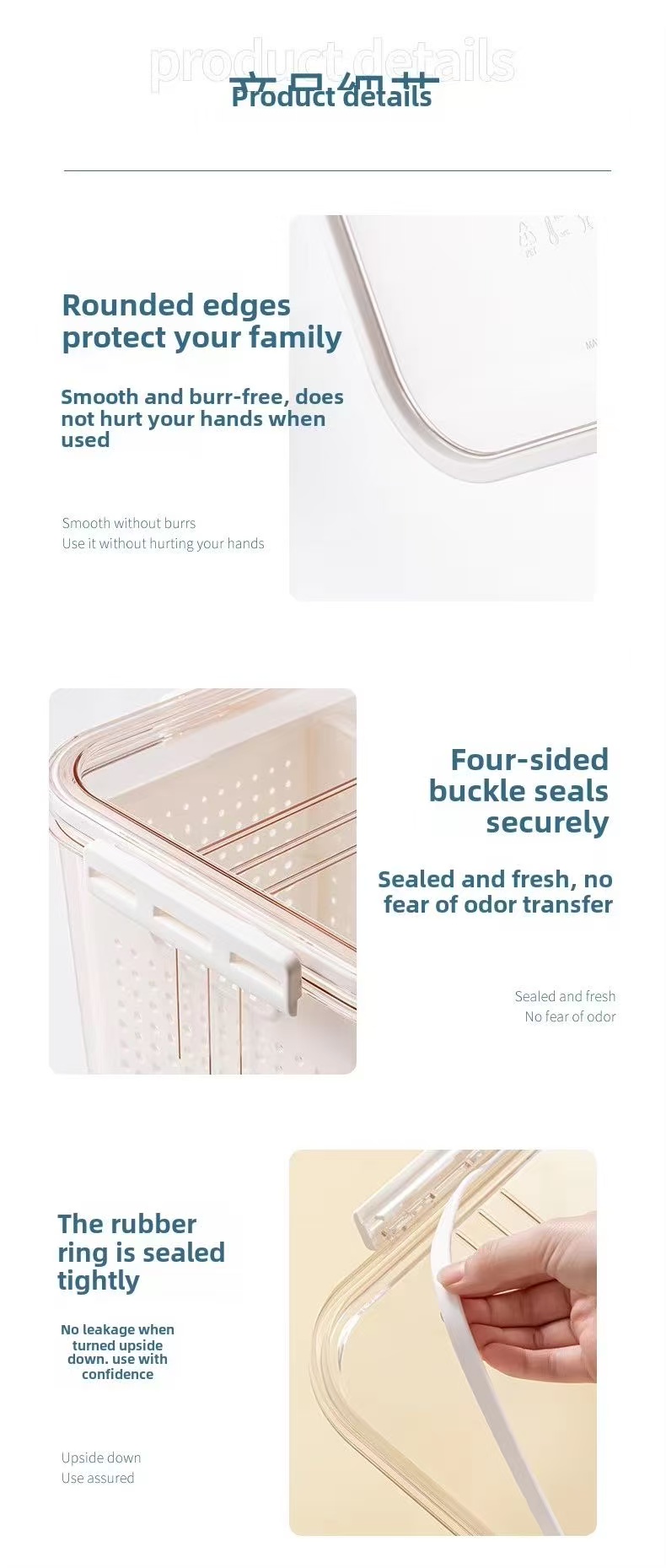 DeDeer Drainable crisper can drain the fresh-keeping box, close the fresh isolation of odor, avoid odor, removable partition, give each food a home, reasonable storage of food. Food cleaning is convenient, can be timed design, for the freshness of food on a lock. You can choose from a variety of sizes to avoid wasting space.